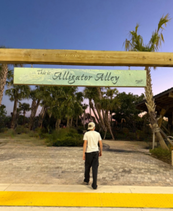 Luck was on our side—we arrived at the perfect time. I was surprised we hadn’t seen it from the road; it’s somewhat tucked away. As we walked up, I was immediately impressed by the beautiful entrance and the giant bronze alligator welcoming visitors.